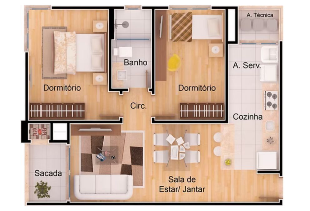 * 02 Dormitórios.