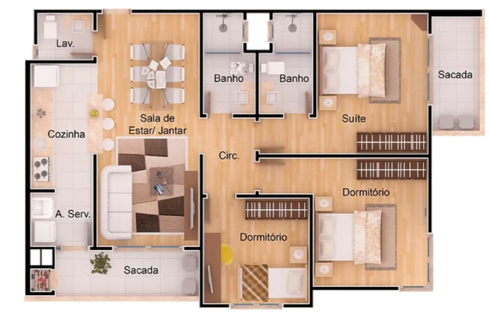 - Cozinha e Área de Serviço.